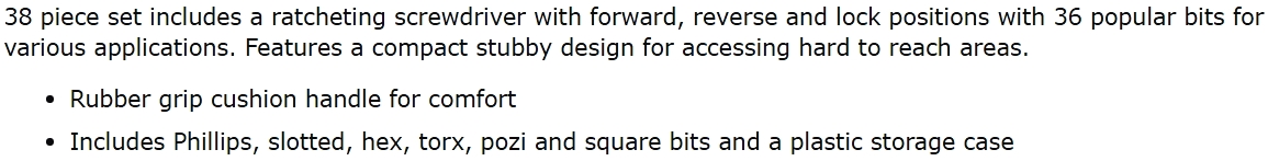 | 9564182 סט ביטים מקצועי למברגות עם ידית ראצ'ט - 38 יחידות - PT W9159 | PERFORMANCE TOOL | סט ביטים מקצועי למברגות עם ידית ראצ'ט - 38 יחידות - PERFORMANCE TOOL W9159 ♦ ביטים מפלדה חזקה ואיכותית&... כלי עבודה נטענים / חשמליים » מקדחים / ביטים / כרסמים | כמות |