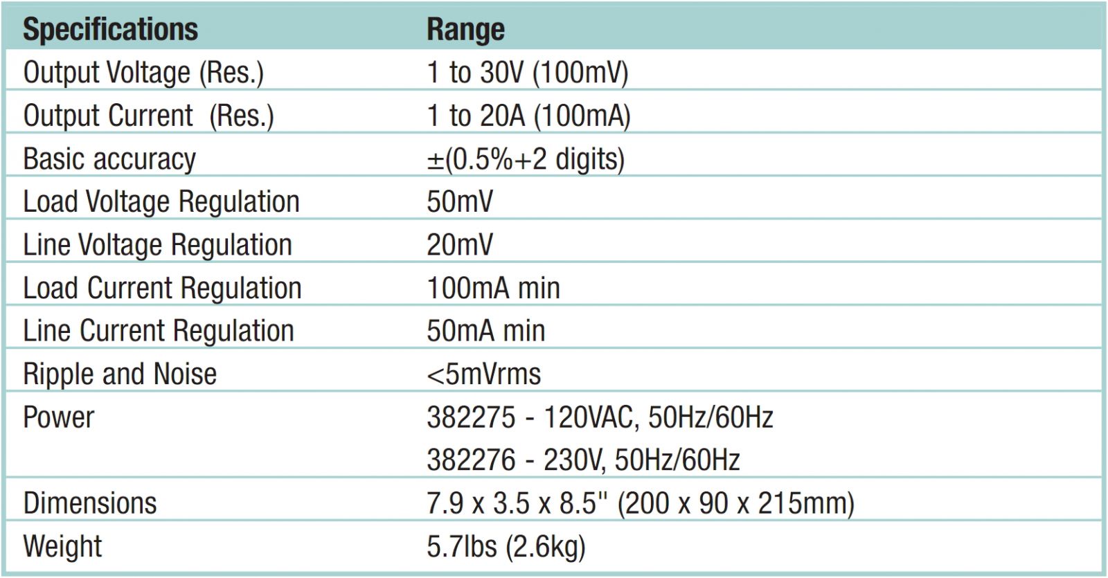 ספק כוח מעבדתי - ADJ - יציאה אחת - (1-30V / 1-20A) EXTECH INSTRUMENTS ועוד ציוד בדיקה ומכשירי מדידה. לחצו למיפרט טכני מלא. צרו קשר לייעוץ מקצועי: 04-8520233