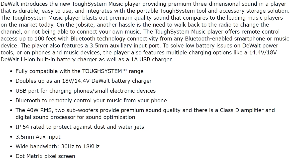 | 15302LT רדיו נייד דיגיטלי - DEWALT DWST1-75663 | DEWALT | רדיו נייד דיגיטלי - DEWALT DWST1-75663 ♦ מופעל על ידי סוללות בוש 14.4V / 18V (לא כלול) ... כלי עבודה נטענים / חשמליים » מכשירי רדיו לאתרי בנייה | לא ניתן להזמין - אזל המלאי |