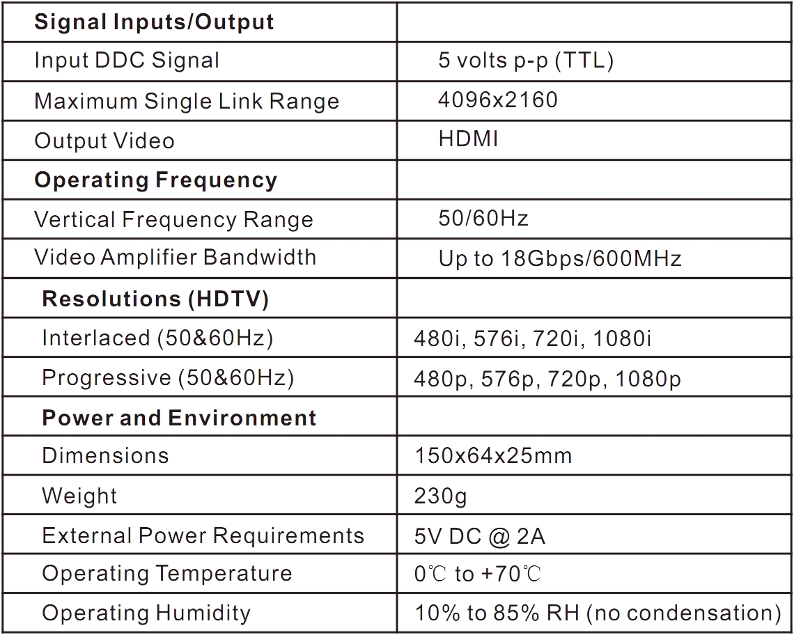 ♦ רוחב פס וידאו בתדר מקסימלי של 18GHZ