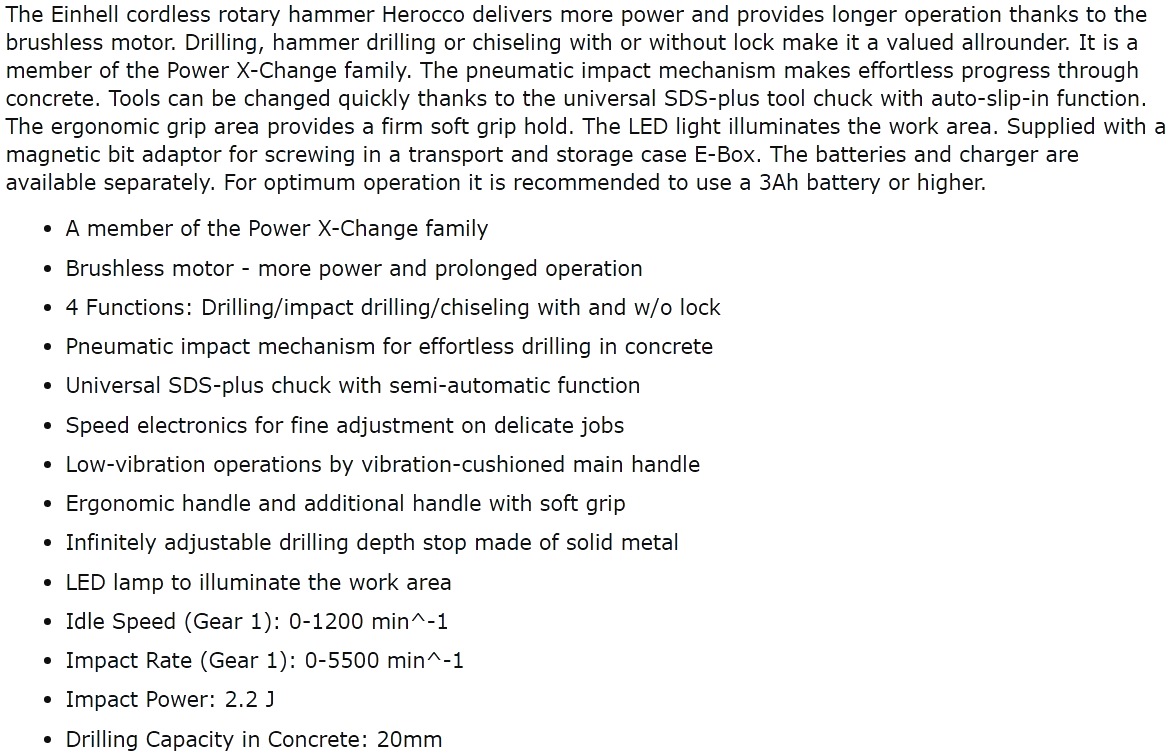 | 0231443 גוף פטישון מקצועי נטען EINHELL HEROCCO - 18V | EINHELL | גוף פטישון מקצועי נטען EINHELL HEROCCO - 18V ♦ מתח עבודה : 18V♦ מהירות סיבוב : 0-1200 ס... כלי עבודה נטענים / חשמליים » מברגות / מקדחות / פטישונים | לא ניתן להזמין - אזל המלאי |