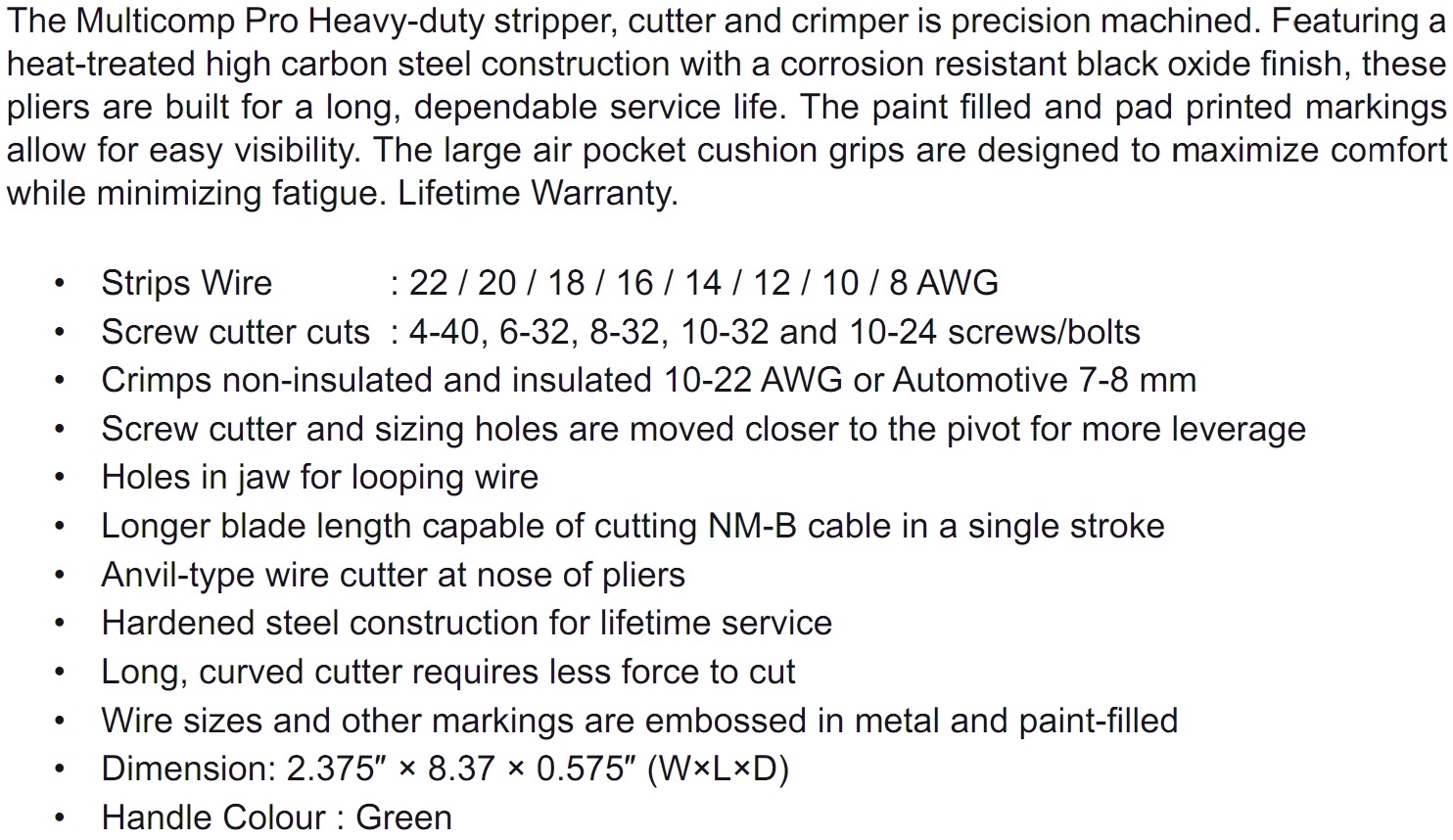 | 6141623 מסיר בידוד מקצועי לאלקטרוניקה - MULTICOMP PRO - 8AWG ~ 22AWG | MULTICOMP PRO | מסיר בידוד מקצועי לאלקטרוניקה - MULTICOMP PRO - 8AWG ~ 22AWG ♦ ידית ארגונומית לאחיזה נוחה ויציבה♦... כלי עבודה ידניים » מסירי בידוד לכבלים | כמות |