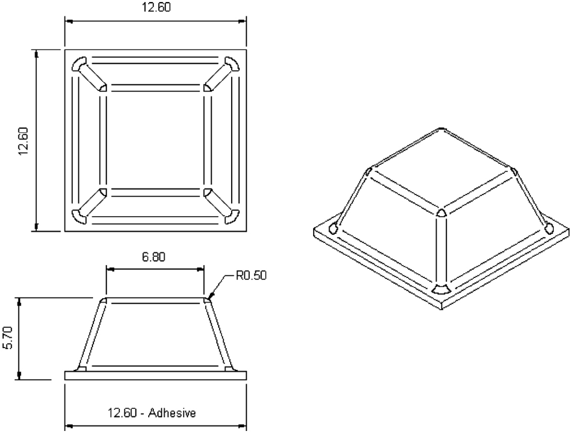 רגליות גומי אפורות נדבקות - פרופיל מרובע - 12.6X5.7 מ''מ - 40 יחידות