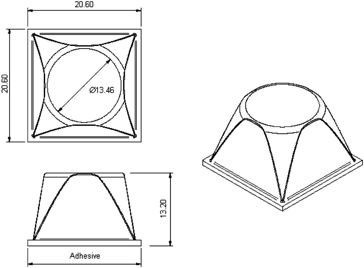 רגליות גומי שחורות נדבקות - פרופיל מרובע - 20.6X13.2 מ''מ - 24 יחידות