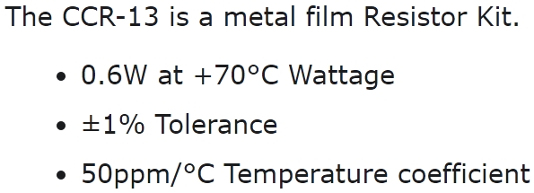 | 7418911 קיט נגדים - 120 ערכים - NOVA CCR-13 - THROUGH HOLE 0.6W 1% | NOVA | קיט נגדים - 120 ערכים - NOVA CCR-13 - THROUGH HOLE 0.6W 1% ♦ מבנה הנגד : AXIAL LEADS♦ אח... רכיבי אלקטרוניקה » נגדים לאלקטרוניקה | כמות |