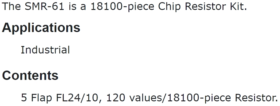 | 9446502 קיט נגדים - 120 ערכים - NOVA SMR-61 - SMD 0603 - 0.1W 1% | NOVA | קיט נגדים - 120 ערכים - NOVA SMR-61 - SMD 0603 - 0.1W 1% ♦ מבנה הנגד : SMD 0603♦ אחוז די... רכיבי אלקטרוניקה » נגדים לאלקטרוניקה | כמות |