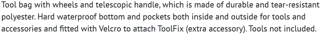 | 2850823 תיק טרולי לכלי עבודה - RAACO TROLLYPROFF | RAACO | תיק טרולי לכלי עבודה - RAACO TROLLYPROFF ♦ עשוי מבד פוליאסטר חזק ועמיד במיוחד♦ מסגרת פל... ארגזי כלים ופתרונות אחסון » ארגזי כלים , מזוודות טכנאים ותיקים לכלי עבודה | כמות |