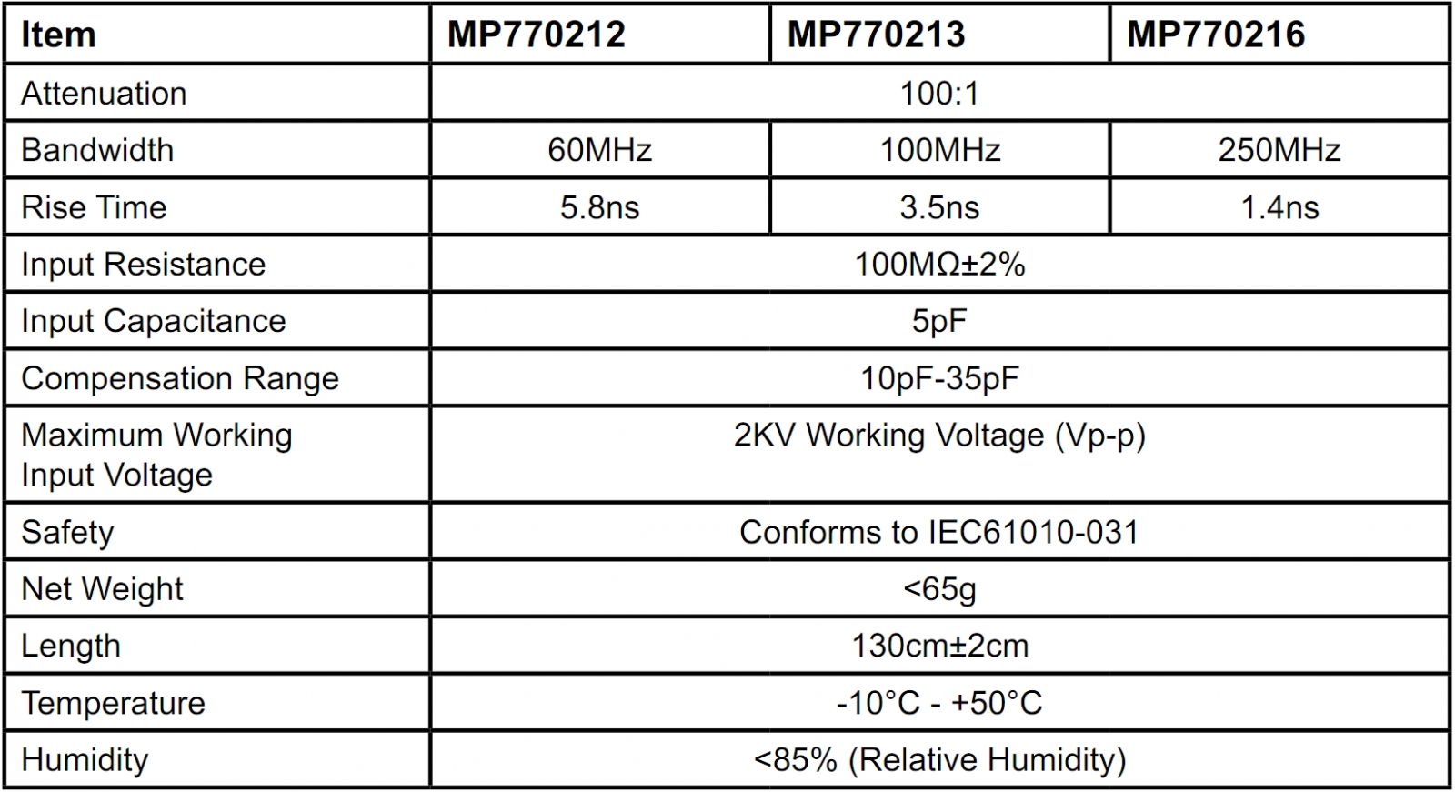 פרוב לאוסצילוסקופ - MULTICOMP PRO - 100MHZ , 2KV , 100:1 MULTICOMP PRO ועוד ציוד בדיקה ומכשירי מדידה. לחצו למיפרט טכני מלא. צרו קשר לייעוץ מקצועי: 04-8520233