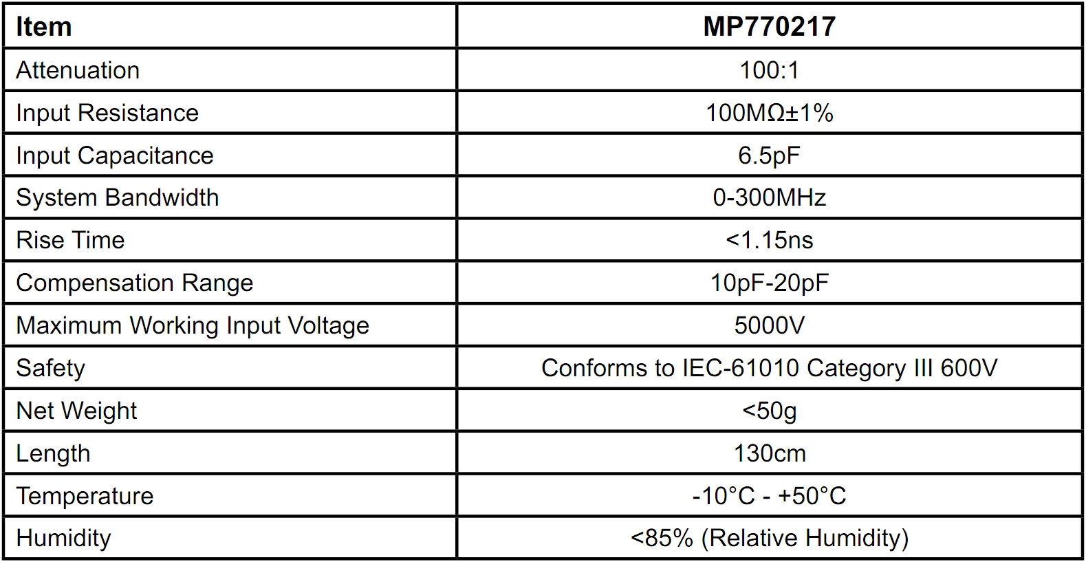 פרוב לאוסצילוסקופ - MULTICOMP PRO - 300MHZ , 5KV , 100:1 MULTICOMP PRO ועוד ציוד בדיקה ומכשירי מדידה. לחצו למיפרט טכני מלא. צרו קשר לייעוץ מקצועי: 04-8520233