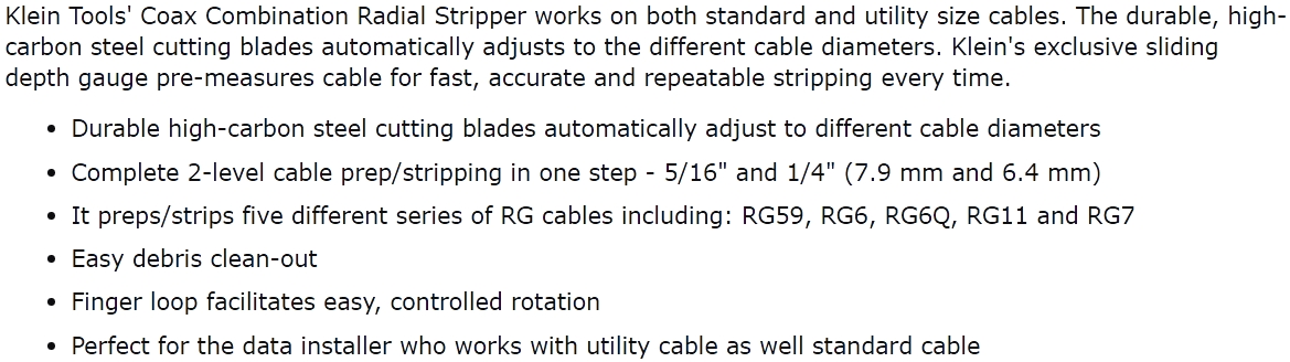 | 1659382 מסיר בידוד מקצועי לכבלים קואקסיאליים - KLEIN TOOLS VDV110-095 | KLEIN TOOLS | מסיר בידוד מקצועי לכבלים קואקסיאליים - KLEIN TOOLS VDV110-095 ♦ להבים מפלדת קרבון חזקה במיוחד♦ מת... כלי עבודה ידניים » מסירי בידוד לכבלים | כמות |