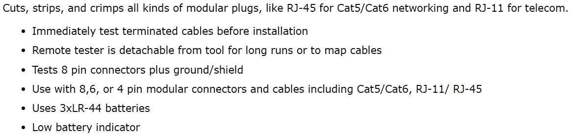 | 1291082 לוחץ רצ'ט למחברי תקשורת משולב בודק כבלים - DURATOOL | DURATOOL | לוחץ רצ'ט למחברי תקשורת משולב בודק כבלים - DURATOOL ♦ מתאים למחברים : RJ11 , RJ12 , RJ45♦ כו... כלי עבודה ידניים » לוחצים לכבלים | כמות |