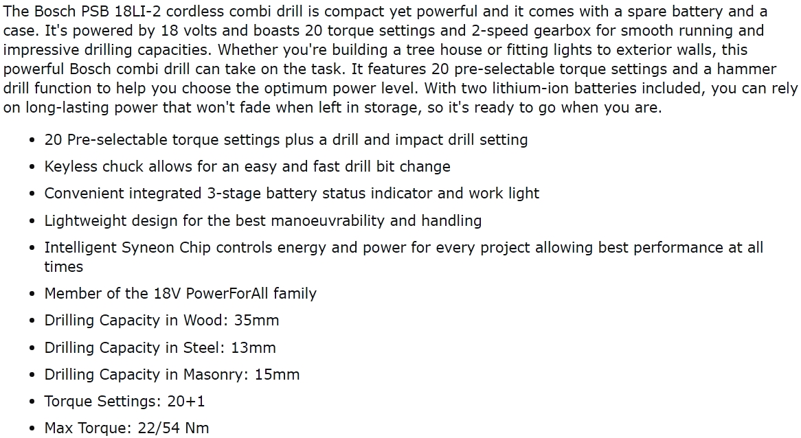 BOSCH 18V CORDLESS COMBI DRILL KIT - PSB 18 LI-2