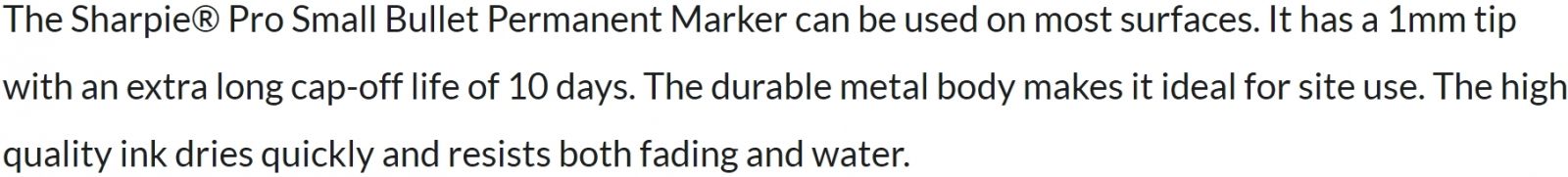 | 5313523 טוש סימון שחור פרמננטי - SHARPIE PROFESSIONAL BARREL TIP | SHARPIE | טוש סימון שחור פרמננטי - SHARPIE PROFESSIONAL BARREL TIP ♦ טוש פרמננטי עמיד מפני מים♦ רא... כבלים ואביזרים לכבלים » פתרונות סימון לכבלים - HELLERMANNTYTON | לא ניתן להזמין - אזל המלאי |