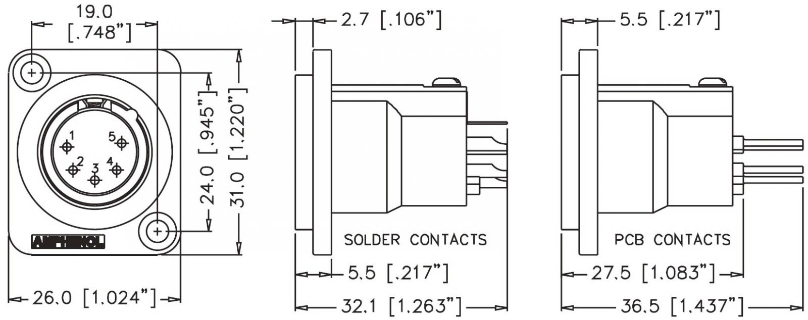 מחבר XLR זכר להלחמה לפנל - 5 מגעים - AMPHENOL AC5MDZB AMPHENOL AUDIO ועוד קונקטורים, מחברים ומתאמים. לחצו למיפרט טכני מלא. צרו קשר לייעוץ מקצועי: 04-8520233