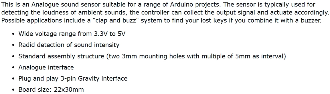 | 9906492 סנסור לפיתוח - DFROBOT SOUND SENSOR FOR ARDUINO | DFROBOT | סנסור לפיתוח - DFROBOT SOUND SENSOR FOR ARDUINO ♦ מק"ט יצרן : DFR0034  ... מוצרי פיתוח לאלקטרוניקה » מוצרי פיתוח לאלקטרוניקה - DFROBOT | כמות |