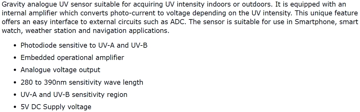 | 1216492 סנסור לפיתוח - DFROBOT UV SENSOR FOR ARDUINO | DFROBOT | סנסור לפיתוח - DFROBOT UV SENSOR FOR ARDUINO ♦ מק"ט יצרן : SEN0175 &... מוצרי פיתוח לאלקטרוניקה » מוצרי פיתוח לאלקטרוניקה - DFROBOT | כמות |