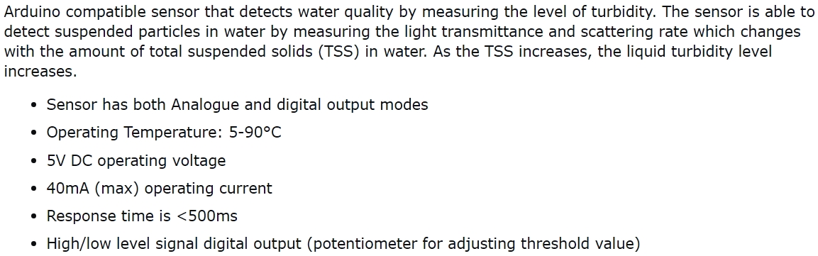 | 2216492 סנסור לפיתוח - DFROBOT TURBIDITY SENSOR FOR ARDUINO | DFROBOT | סנסור לפיתוח - DFROBOT TURBIDITY SENSOR FOR ARDUINO ♦ מק"ט יצרן : SEN0189 &... מוצרי פיתוח לאלקטרוניקה » מוצרי פיתוח לאלקטרוניקה - DFROBOT | כמות |