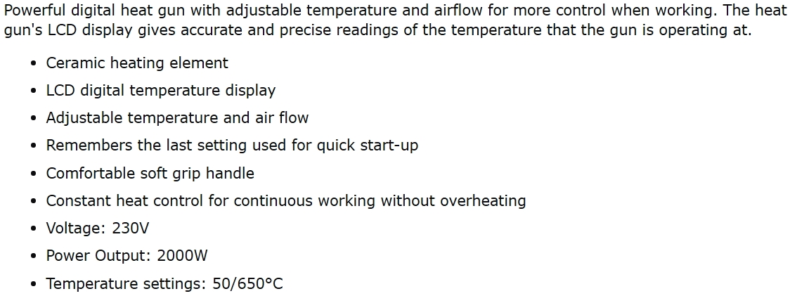 | 64691LT אקדח אוויר חם מקצועי - DURATOOL D03200 LCD | DURATOOL | אקדח אוויר חם מקצועי - DURATOOL D03200 LCD ♦ הספק : 2000 וואט♦ תצוגת LCD דיגיטלית&dia... כלי עבודה נטענים / חשמליים » אקדחי אוויר חם | כמות |