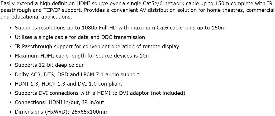 | 7783733 מאריך FULL HD HDMI + IR & TCP/IP על CAT5E / CAT6 - עד 150 מטר | PRO-SIGNAL | מאריך FULL HD HDMI + IR & TCP/IP על CAT5E / CAT6 - עד 150 מטר למפרט מלא לחץ כאן ... Talmir Home Tech » ציוד היקפי למחשבים | לא ניתן להזמין - אזל המלאי |