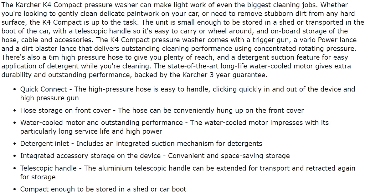 | 38781IS מכונת שטיפה בלחץ - KARCHER K4 COMPACT V2.0 | KARCHER | מכונת שטיפה בלחץ - KARCHER K4 COMPACT V2.0 ♦ מנוע עוצמתי בהספק של 1800 וואט♦ לחץ עבודה מ... כלי עבודה נטענים / חשמליים » מכונות שטיפה בלחץ | לא ניתן להזמין - אזל המלאי |