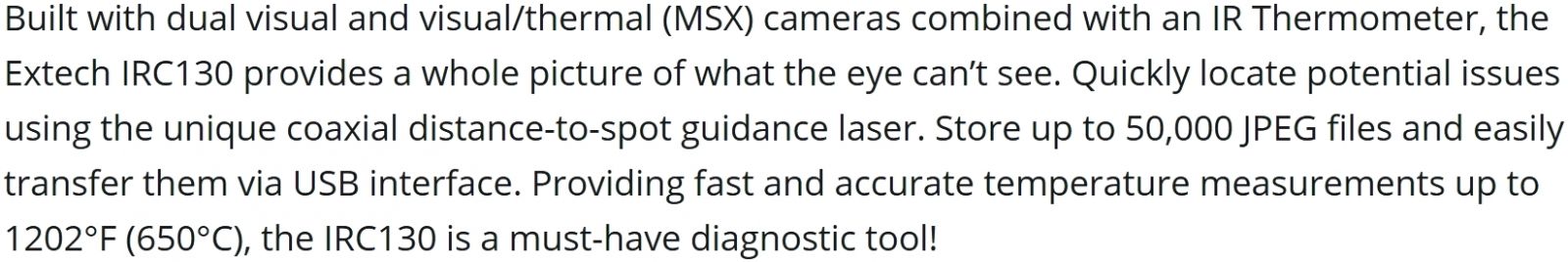 | 7270533 מצלמה תרמית - EXTECH IRC-130 | EXTECH INSTRUMENTS | מצלמה תרמית - EXTECH IRC-130 &nbs... ציוד בדיקה ומכשירי מדידה » מצלמות תרמיות | כמות |