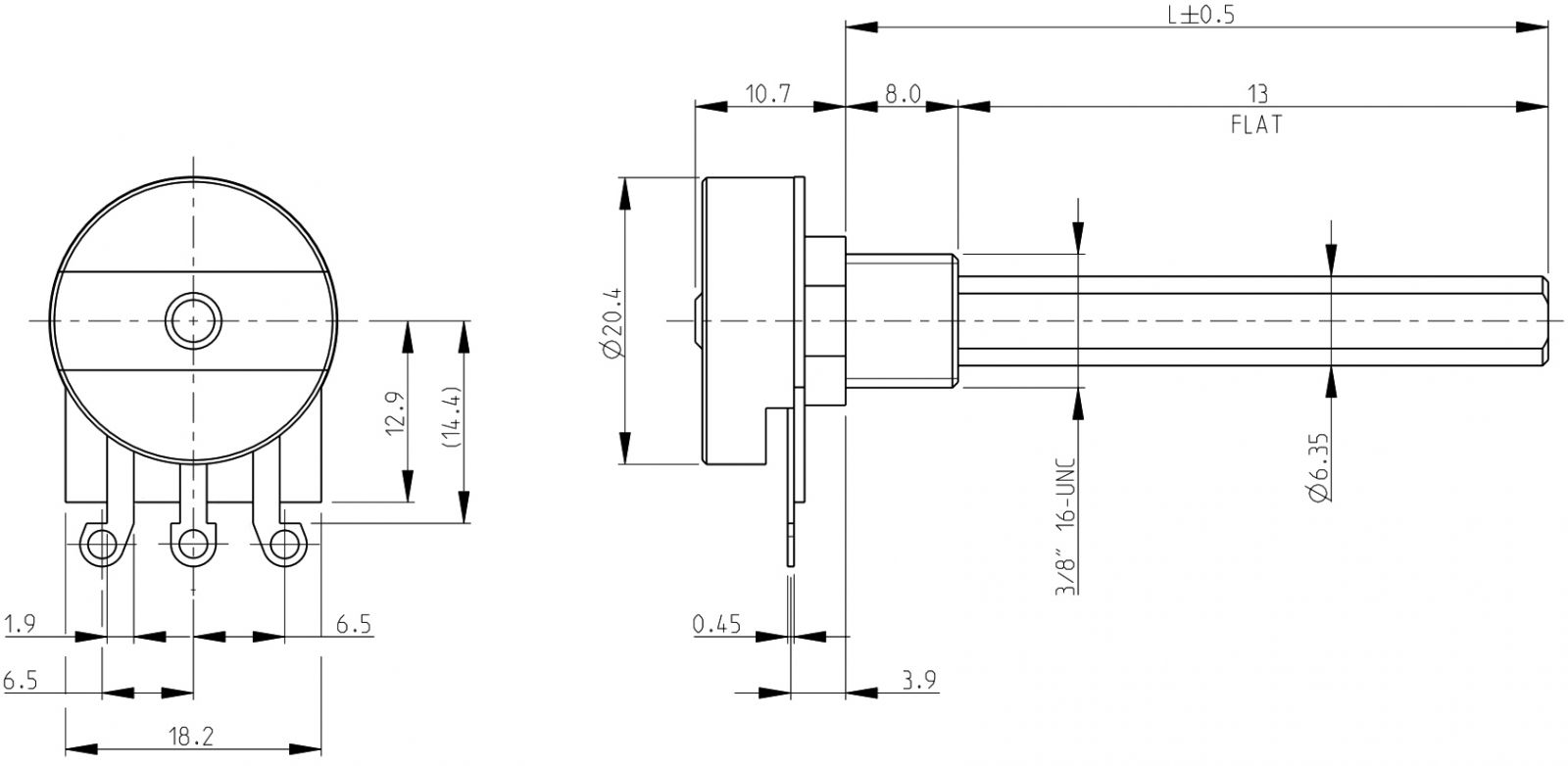 פוטנציומטר חד סיבובי לוגריתמי - CITEC 23ESB - 10K