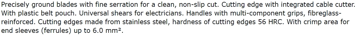 | 5939582 מספריים מקצועיות לחשמלאים - KNIPEX 95 05 10 SB - 190MM | KNIPEX | מספריים מקצועיות לחשמלאים - KNIPEX 95 05 10 SB - 190MM ♦ להבים מפלדת אל-חלד חזקה ומדויקת♦&nb... כלי עבודה ידניים » סכינים , מספריים וכלי חיתוך | לא ניתן להזמין - אזל המלאי |