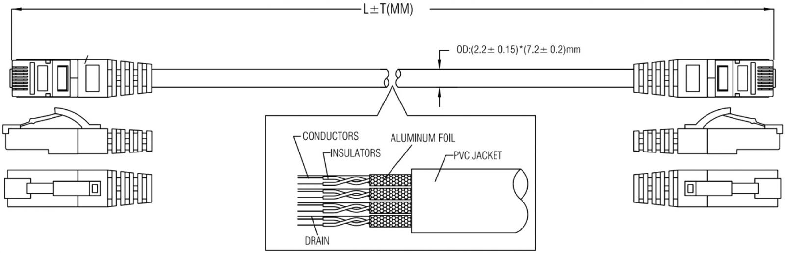 ♦ סוג כבל : FTP CATEGORY 6A FLAT PATCH CABLE
