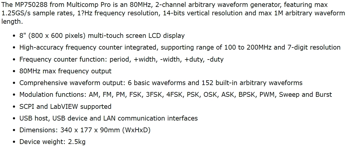 | 5799823 מחולל אותות שולחני - MULTICOMP PRO MP750288 - 80MHZ | MULTICOMP PRO | מחולל אותות שולחני - MULTICOMP PRO MP750288 - 80MHZ למפרט מלא לחץ כאן ... ציוד בדיקה ומכשירי מדידה » מחוללי אותות למעבדה | כמות |