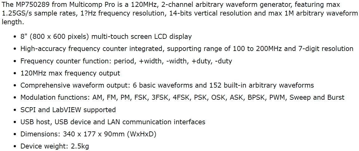 | 6799823 מחולל אותות שולחני - MULTICOMP PRO MP750289 - 120MHZ | MULTICOMP PRO | מחולל אותות שולחני - MULTICOMP PRO MP750289 - 120MHZ למפרט מלא לחץ כאן ... ציוד בדיקה ומכשירי מדידה » מחוללי אותות למעבדה | כמות |