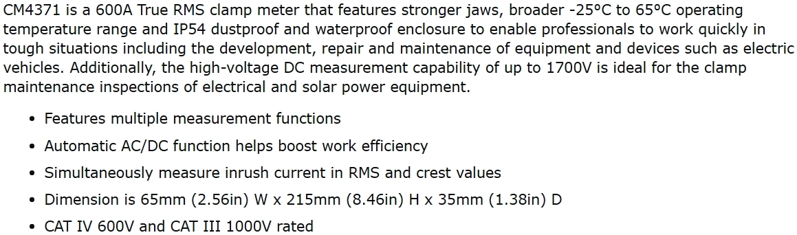 | 6422623 רב מודד צבת זרם ידני דיגיטלי - HIOKI CM4371 | HIOKI | רב מודד צבת זרם ידני דיגיטלי - HIOKI CM4371 למפרט מלא לחץ כאן ... ציוד בדיקה ומכשירי מדידה » רבי מודדים וצבתות זרם | לא ניתן להזמין - אזל המלאי |