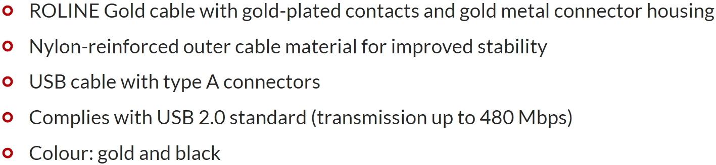 | 0027823 כבל ROLINE GOLD - 1.8M - A(M) ~ A(M) - USB 2.0 | ROLINE | כבל ROLINE GOLD - 1.8M - A(M) ~ A(M) - USB 2.0 ♦ מגעים מנחושת עם ציפוי זהב♦ כיסוי מאלומי... כבלים ואביזרים לכבלים » כבלים USB | כמות | |