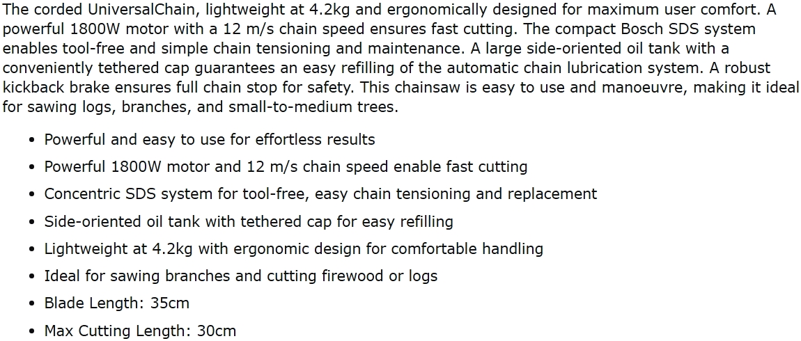 | 02881IS מסור שרשרת חשמלי מקצועי BOSCH UNIVERSALCHAIN 35 - 1800W | BOSCH | מסור שרשרת חשמלי מקצועי BOSCH UNIVERSALCHAIN 35 - 1800W ♦ הספק עבודה : 1800 וואט♦ אורך הלהב : ''1... כלי עבודה נטענים / חשמליים » כלי גינון חשמליים / נטענים | כמות |