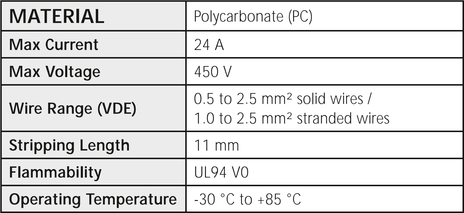 ♦ עבור כבלים קשיחים : 0.50MM² ~ 2.5MM²