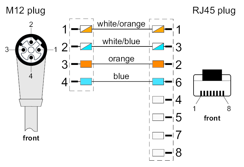 ♦ צד א' : מחבר M12 זוויתי זכר ארבעה מגעים