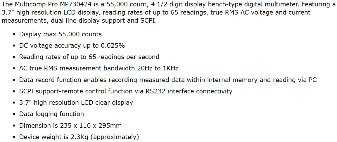 | 4848533 רב מודד שולחני דיגיטלי - MULTICOMP PRO MP730424 | MULTICOMP PRO | רב מודד שולחני דיגיטלי - MULTICOMP PRO MP730424 למפרט מלא לחץ כאן ... ציוד בדיקה ומכשירי מדידה » רבי מודדים וצבתות זרם | כמות |