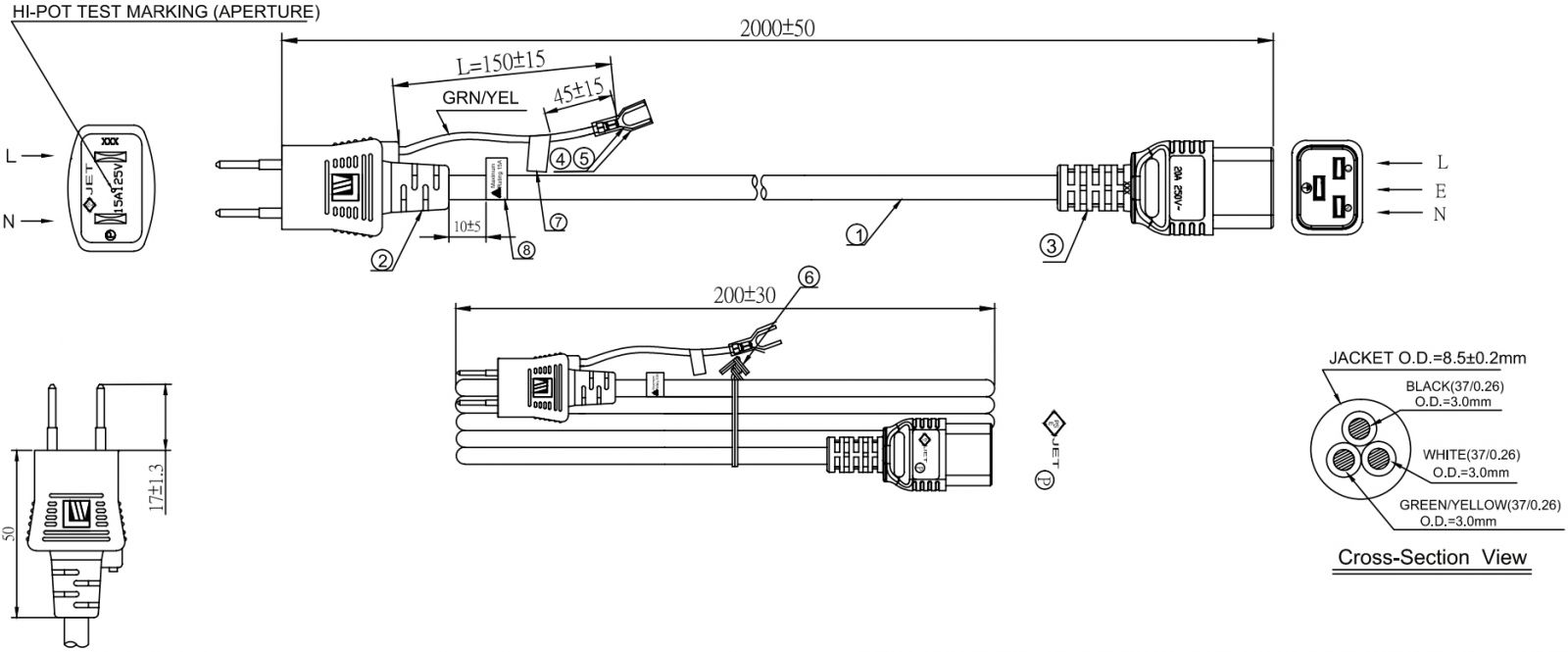 כבל חשמל יצוק - JAPAN ~ IEC C19 - 15A - 125V - 2M