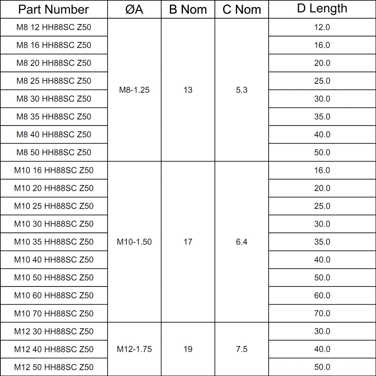 ♦ מאושר תקנים : DIN 933 , TC1 CR3