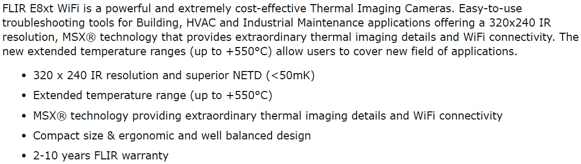 | 6250103 מצלמה תרמית מקצועית - FLIR E8 XT WIFI | FLIR SYSTEMS | מצלמה תרמית מקצועית - FLIR E8 XT WIFI ♦ טכנולוגית צילום FLIR MSX BLENDING♦ רזולוציית אינפרא אדום ... ציוד בדיקה ומכשירי מדידה » מצלמות תרמיות | כמות |
