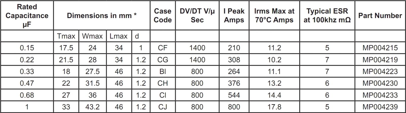 קבל MULTICOMP PRO MP004239 - 1UF , 1600V - SNUBBER