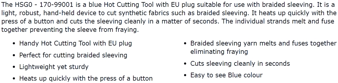 | 1202762 סכין חמה לחיתוך שרוולי הגנה לכבלים - HELLERMANNTYTON HSG0 | HELLERMANN TYTON | סכין חמה לחיתוך שרוולי הגנה לכבלים - HELLERMANNTYTON HSG0 ♦ מבנה ארגונומי לאחיזה נוחה ויציבה♦ חימ... כלי עבודה נטענים / חשמליים » מסורים וכלי חיתוך חשמליים | כמות |
