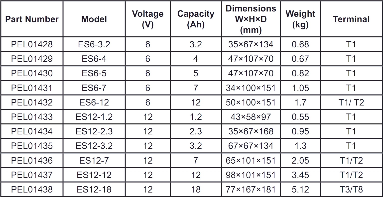 מצבר עופרת נטען - PRO ELEC ES12-1.2 - 12V 1.2AH PRO-ELEC ועוד סוללות, מצברים ומטענים. לחצו למיפרט טכני מלא. צרו קשר לייעוץ מקצועי: 04-8520233