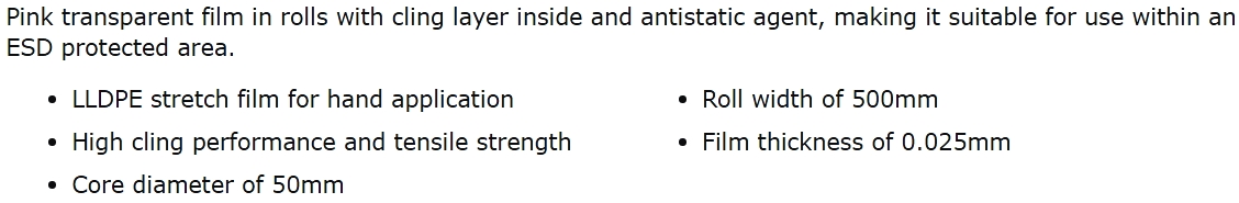 | 5905943 ניילון נצמד אנטי ססטי - 500MM X 300M | MULTICOMP | ניילון נצמד אנטי ססטי - 500MM X 300M ... ציוד אנטי סטטי - ESD » פתרונות אריזה אנטי סטטיים | כמות |