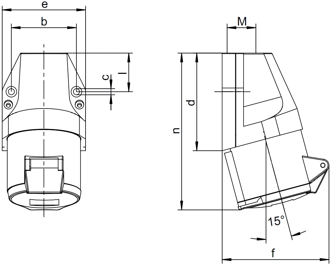 מחבר חשמל תעשייתי אדום - נקבה לחיבור לקיר - 3P+E , 400VAC , 16A