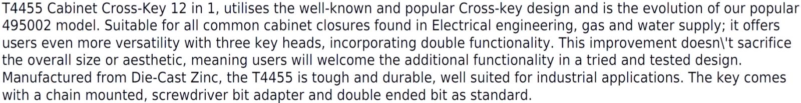 | 9717153 מפתח אוניברסלי לארונות שירות - CK TOOLS T4455 | CK TOOLS | מפתח אוניברסלי לארונות שירות - CK TOOLS T4455 ♦ עבור פתיחת ארונות חשמל, גז, מים וכדומה♦ פלדת CAST... כלי עבודה ידניים » מפתחות ובוקסות | כמות |