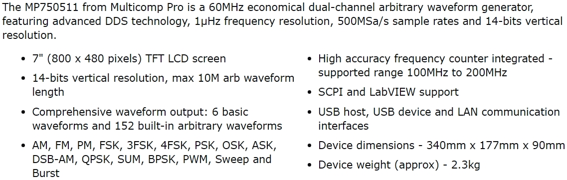 | 4229743 מחולל אותות שולחני - MULTICOMP PRO MP750511 - 60MHZ | MULTICOMP PRO | מחולל אותות שולחני - MULTICOMP PRO MP750511 - 60MHZ למפרט מלא לחץ כאן ... ציוד בדיקה ומכשירי מדידה » מחוללי אותות למעבדה | כמות |