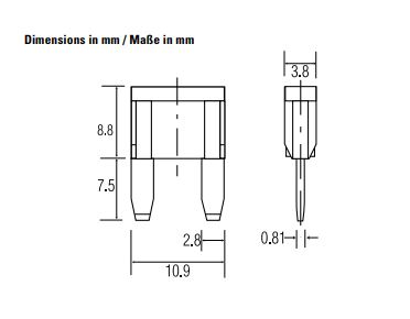 פיוז לרכב - LITTLEFUSE MINI 297 BLADE - 20A 32V