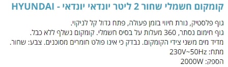 קומקום חשמלי HYUNDAI ועוד מוצרי חשמל לבית. לחצו למיפרט טכני מלא. צרו קשר לייעוץ מקצועי: 04-8520233