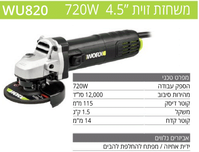 משחזת זווית 115 מ''מ WORKS WORX PROSUMER ועוד כלי עבודה נטענים / חשמליים. לחצו למיפרט טכני מלא. צרו קשר לייעוץ מקצועי: 04-8520233