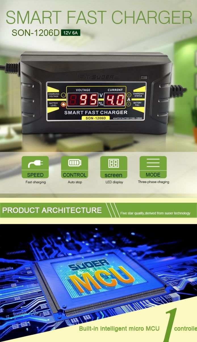מטען מהיר חכם עם צג דיגיטלי 12V 6A SUOER ועוד סוללות, מצברים ומטענים. לחצו למיפרט טכני מלא. צרו קשר לייעוץ מקצועי: 04-8520233